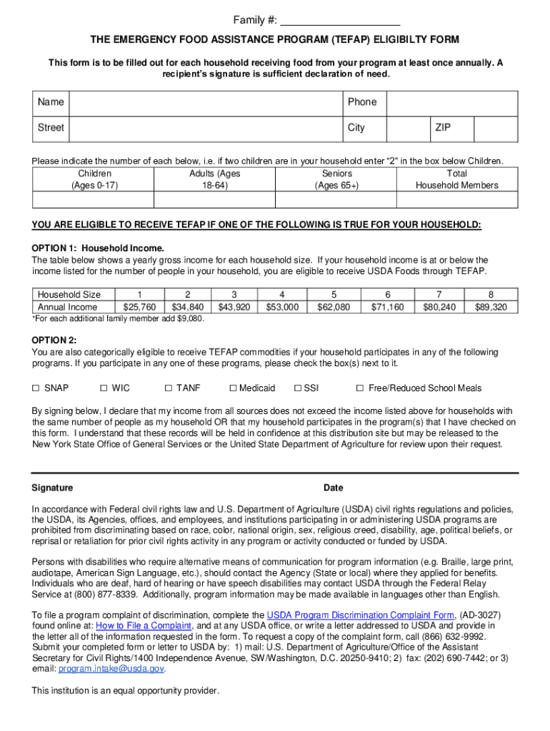 What is The Emergency Food Assistance Program (TEFAP) Eligibility Form