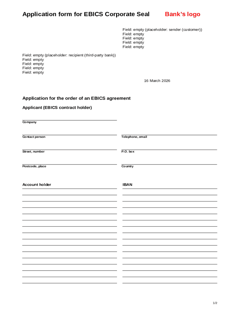 The EBICS Corporate Seal Application Form is a crucial document for businesses seeking to establish an EBICS agreement for data exchange. This form acts as a formal request to initiate the Corporate Seal procedure, ensuring secure electronic transactions. By outlining the necessary company details and authorizations, the form facilitates the efficient management of banking data exchanges.