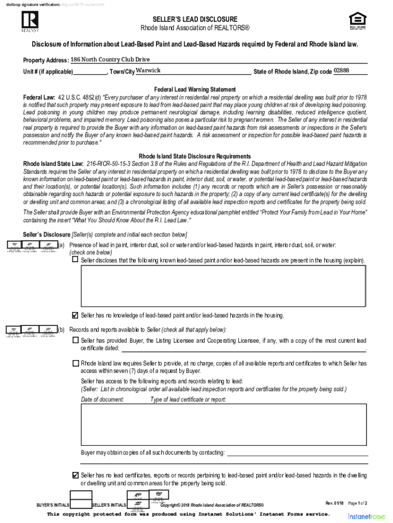 How to Sign the Rhode Island Lead Paint Disclosure Form