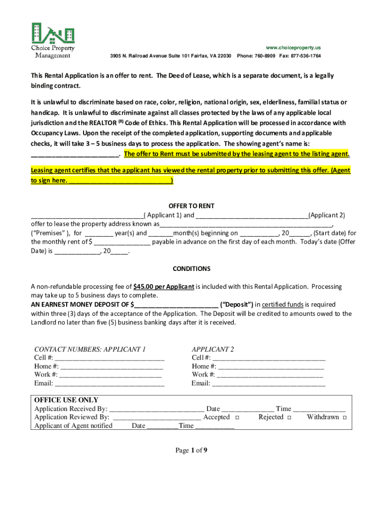 Get the free Rental Application Form