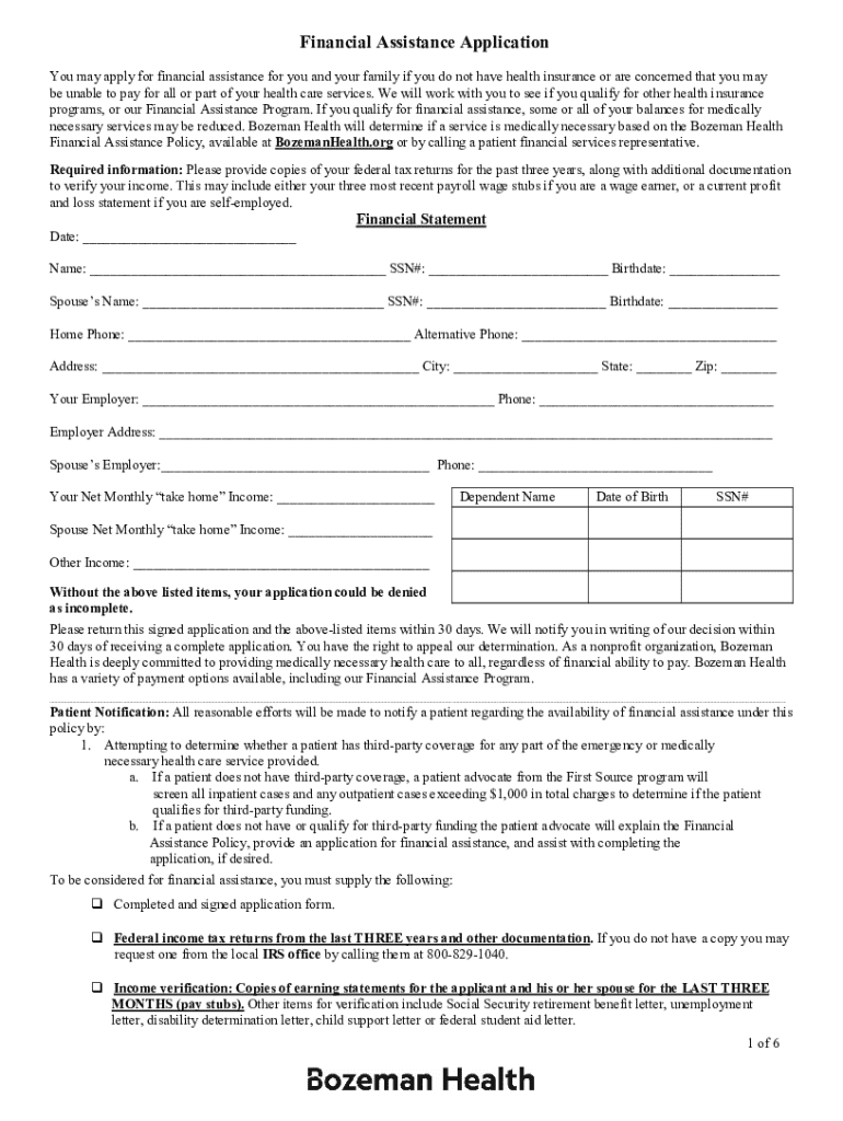 Access the Bozeman Health Financial Assistance Application on pdfFiller.
