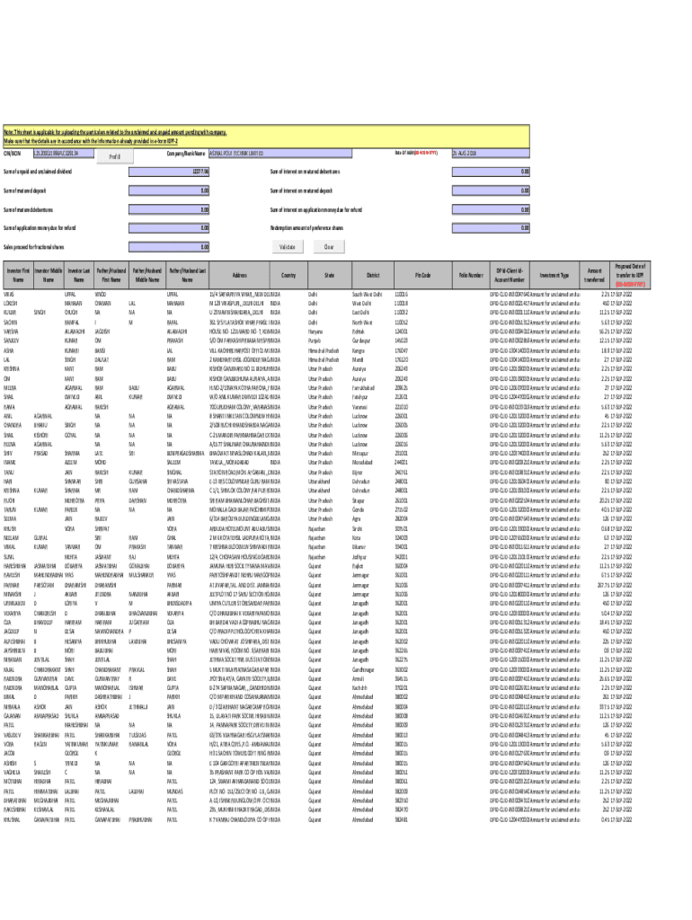 The IEPF-2 Form is a business document used by companies in Gujarat to upload details of unclaimed and unpaid amounts pending with them.