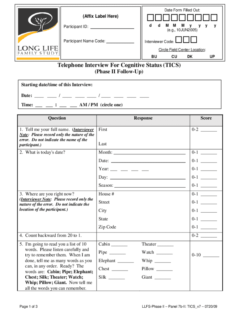 How to Fill Out the Telephone Interview for Cognitive Status (TICS) Form Online