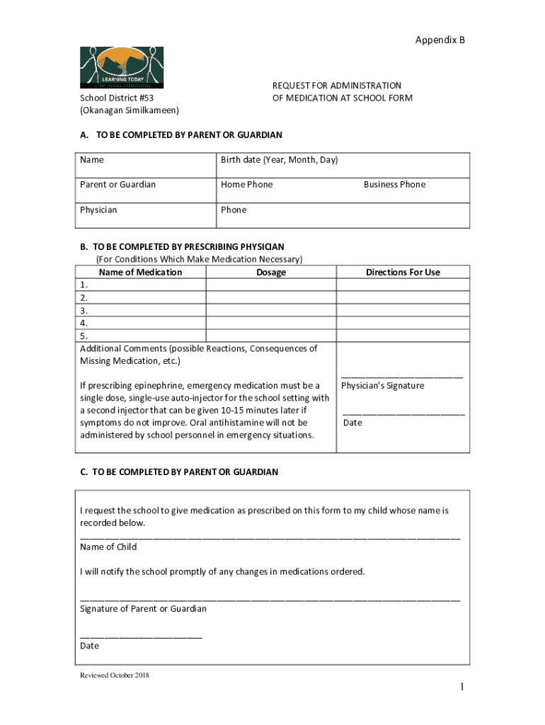 Get the free School Medication Administration Form