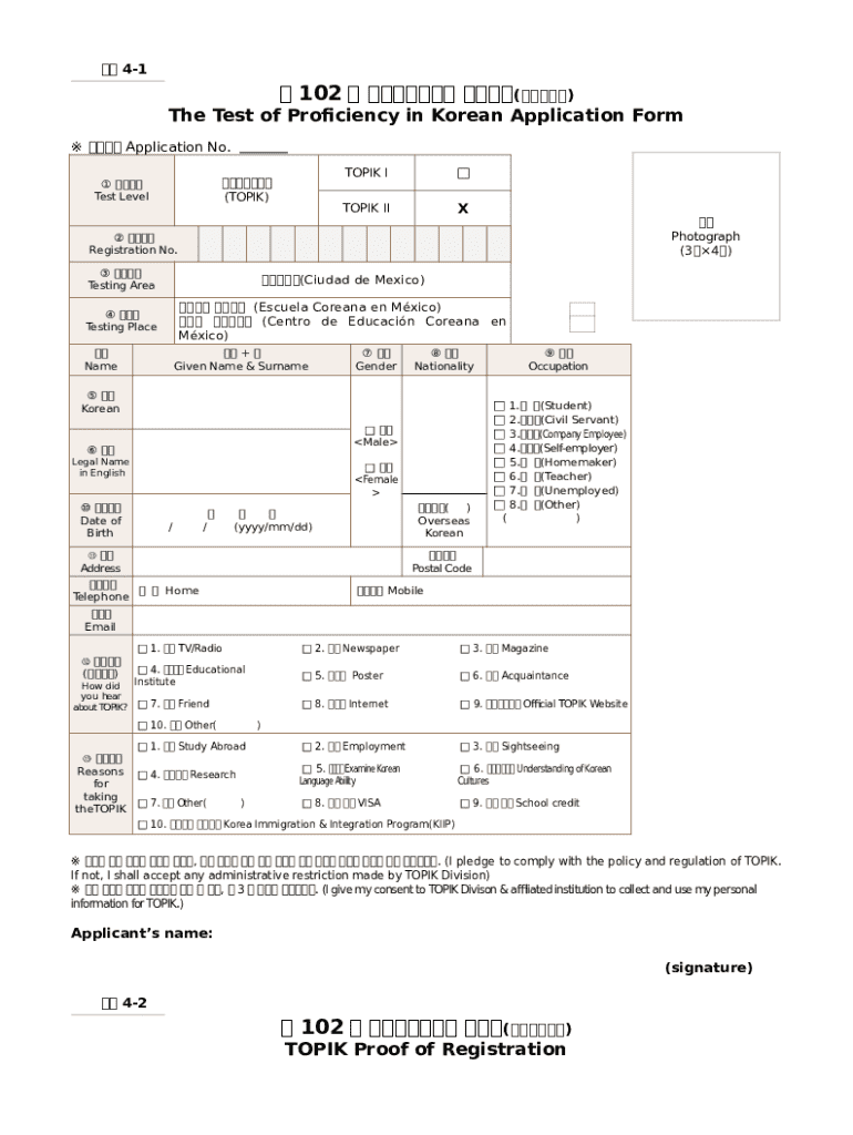 The TOPIK Application Form is designed for a diverse audience that includes students and professionals pursuing Korean language proficiency. It is essential for anyone looking to validate their language skills formally. The relevance of the TOPIK extends beyond mere certification; it represents a significant milestone for language learners dedicated to immersing themselves in Korean culture and opportunities available in Mexico City.