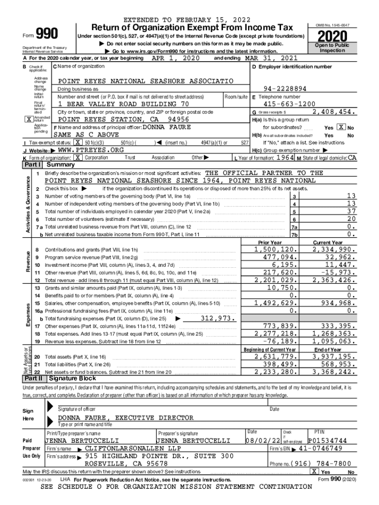 IRS Form 990 plays a vital role for nonprofit organizations, serving as a comprehensive report submitted to the IRS. This document is essential for demonstrating a nonprofit's financial health and transparency. The 2020 version introduces specific requirements that ensure greater accountability, crucial for entities like the Point Reyes National Seashore Association. Understanding IRS Form 990 is key for maintaining tax-exempt status and fostering trust among stakeholders.
