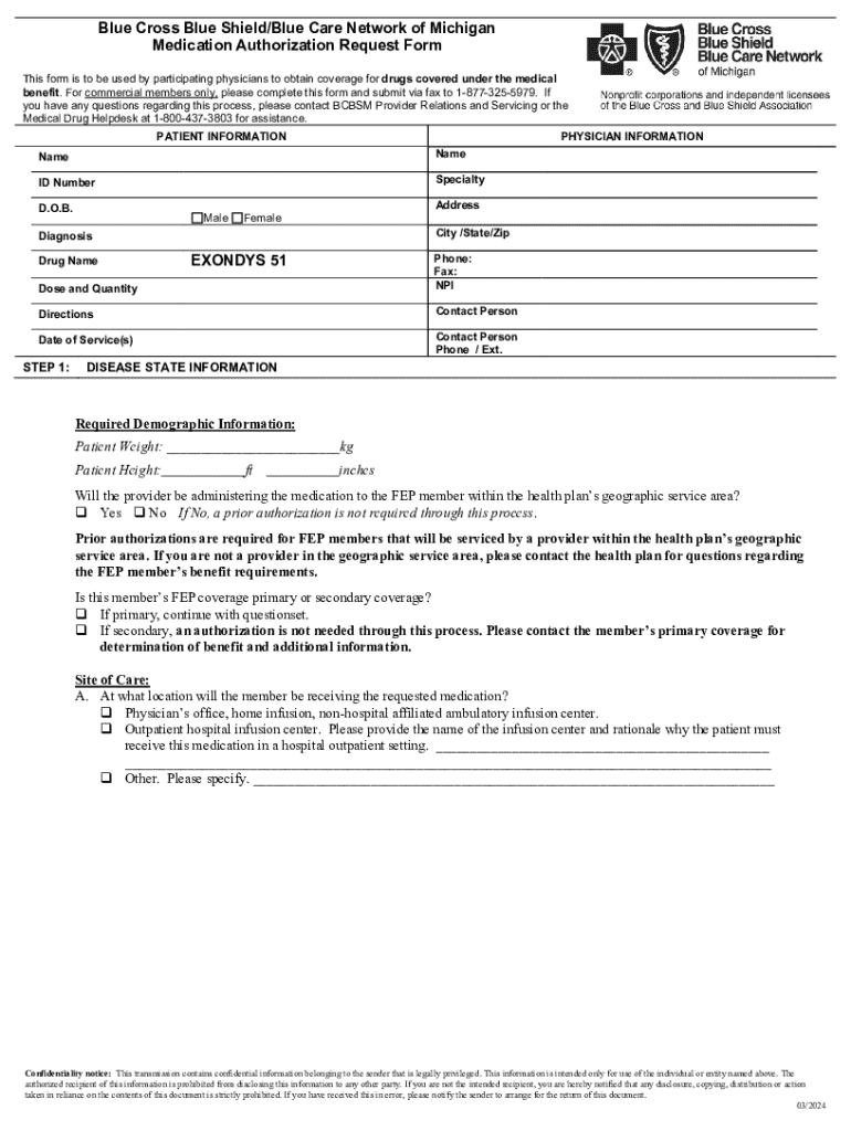 The Blue Cross Blue Shield Medication Authorization Request Form is designed with user-friendliness in mind. It includes: