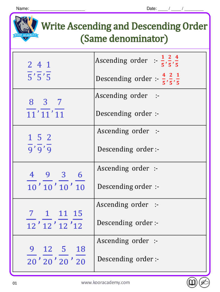 The math worksheet is a crucial educational tool designed to facilitate the learning process. Its primary function is to provide students with practice exercises focused on ordering numbers in both ascending and descending order. Implementing this worksheet in educational settings promotes engagement and comprehension of mathematical concepts, allowing students to solidify their understanding through hands-on practice.