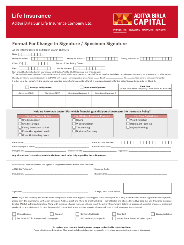 Purpose and Benefits of the Aditya Birla Sun Life Insurance Signature Change Form