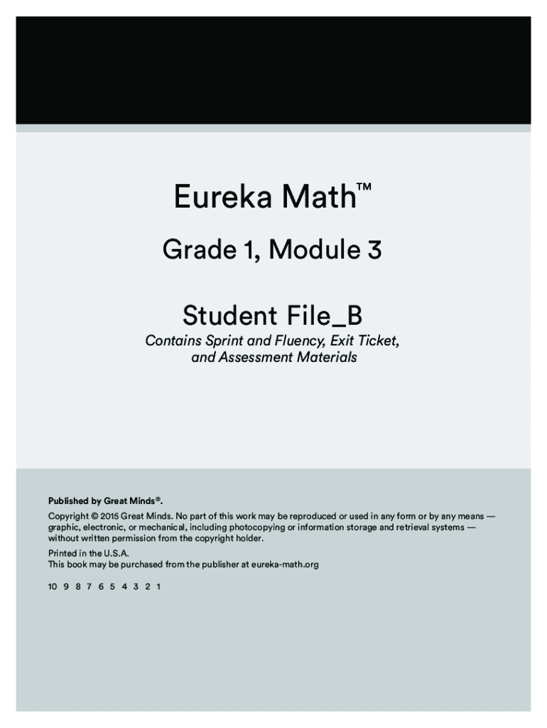 The Eureka Math Grade 1 Module 3 Student File serves as a comprehensive mathematical exercise book designed specifically for first-grade students. This critical educational document includes various components such as sprint and fluency packets, exit tickets, and assessment materials. Published by Great Minds in 2015, it is an essential tool for young learners to explore and apply mathematical concepts.