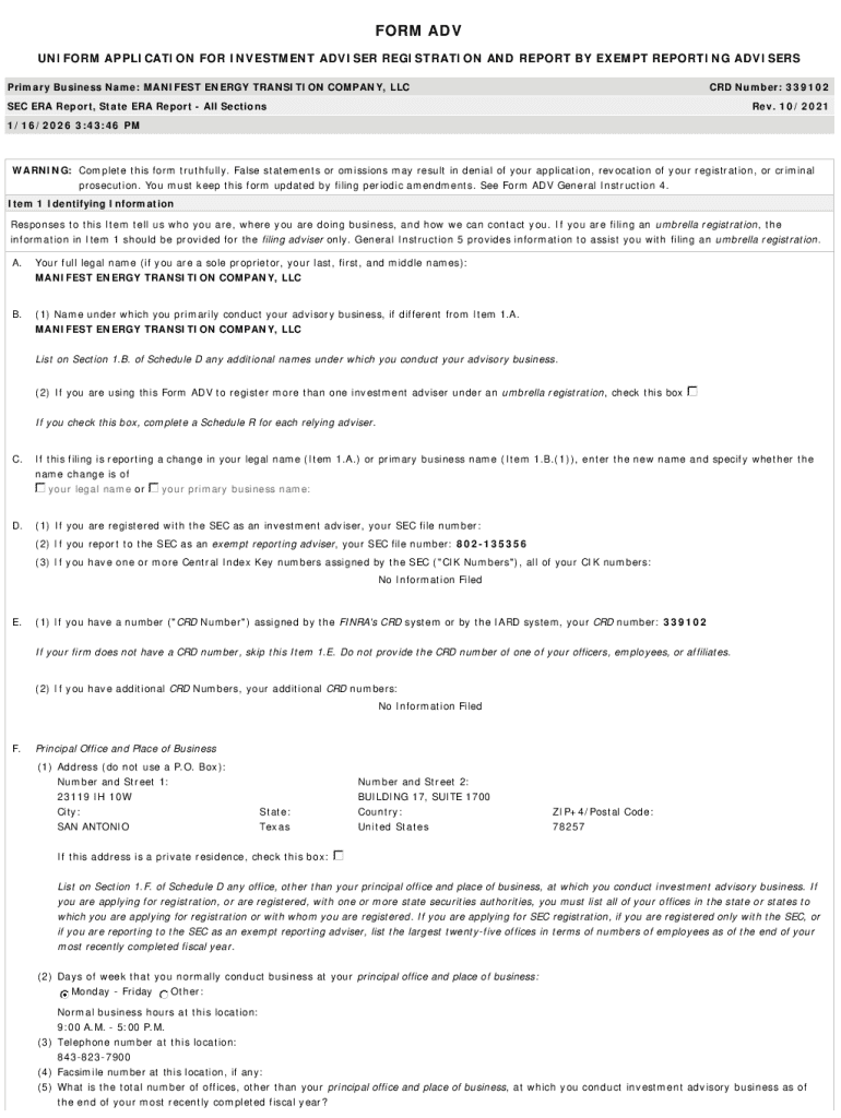 Get the free MANIFEST ENERGY TRANSITION COMPANY, LLC