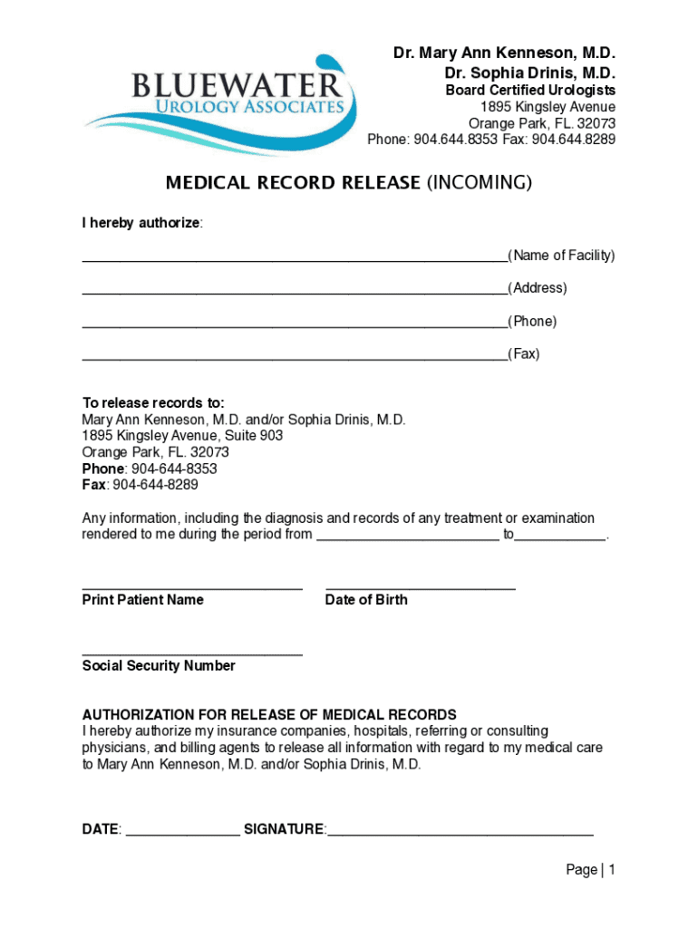 Get the free Incoming Medical Record Release BWU