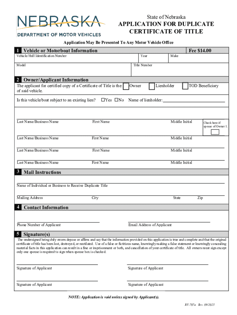 Who Needs the Nebraska Duplicate Certificate of Title Application?