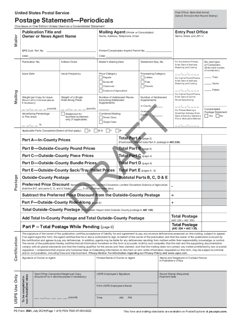 Who Needs the USPS Periodicals Postage Statement Form 3541?