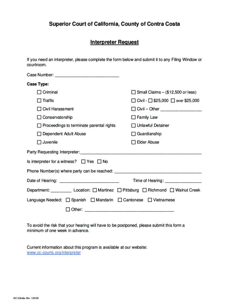 4.Gather personal information such as your 'Case Number' and details about the party requesting an interpreter if applicable.