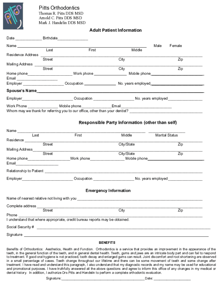 The Adult Patient Information Form is vital for both patients and orthodontic practices. It streamlines the patient intake process, making it easier for both parties to manage and organize information efficiently.