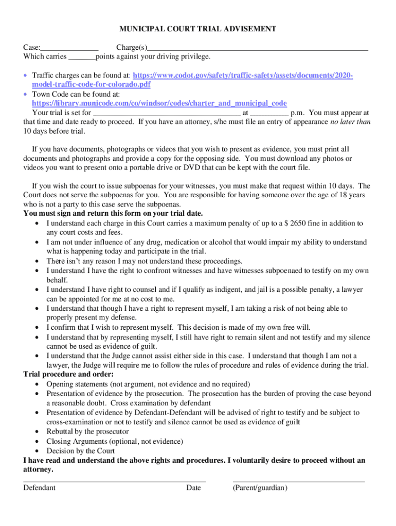 Get the free Municipal Court Trial Advice Form