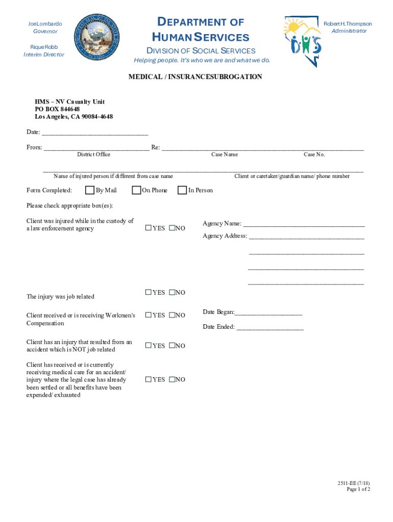 How to fill out the nevada medical insurance subrogation
