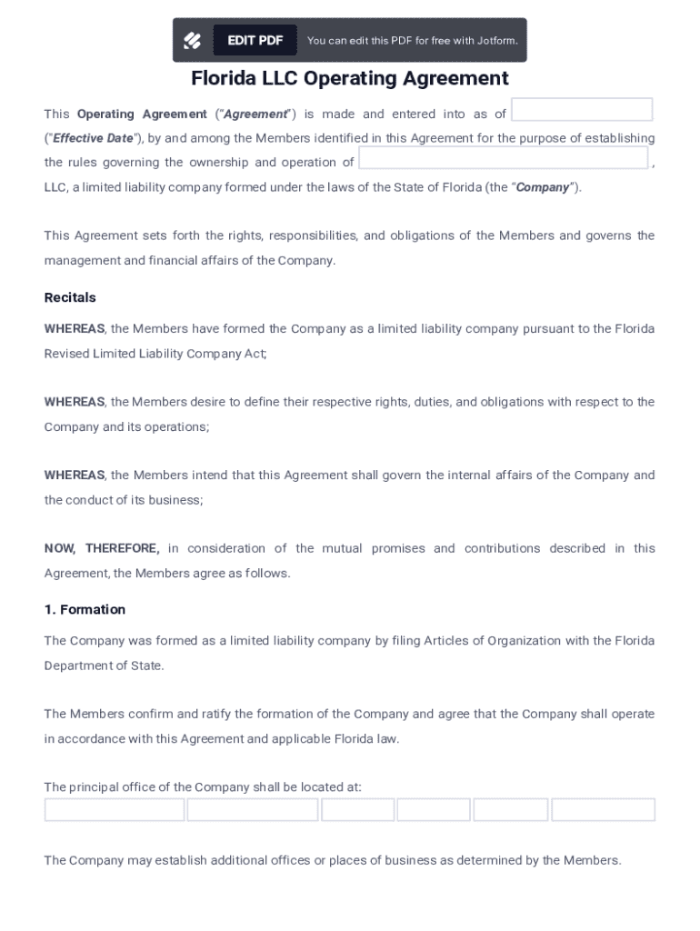 Utilize pdfFiller for Your Florida LLC Operating Agreement Needs