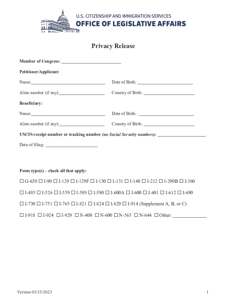 The USCIS Privacy Release Form is primarily for applicants and petitioners seeking to authorize USCIS to share their information with a Member of Congress or their staff.