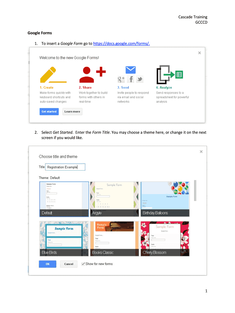 Get the free Cascade Training GCCCD 1 Google Forms 1. To insert a Google ... - gcccd