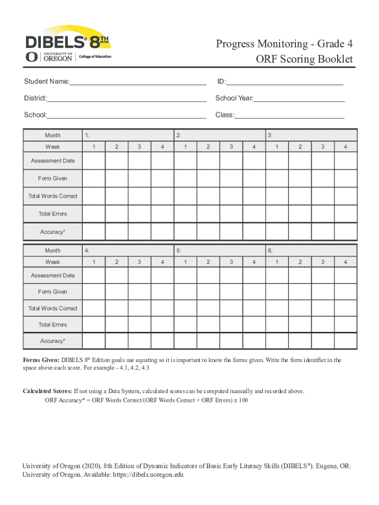 Get the free DIBELS 8th Edition ORF Scoring Booklet