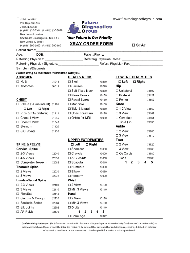 Get the free Xray Order Form