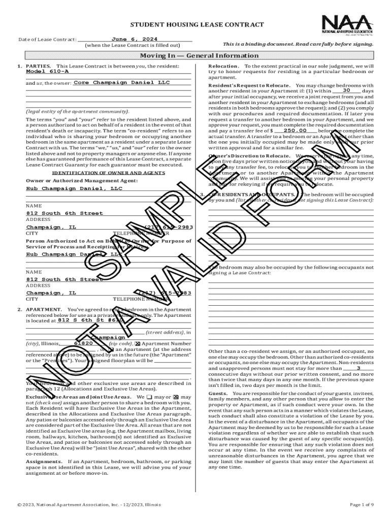 The Student Housing Lease Contract is a legal document used by students and owners to define rental terms for housing in Champaign, Illinois.