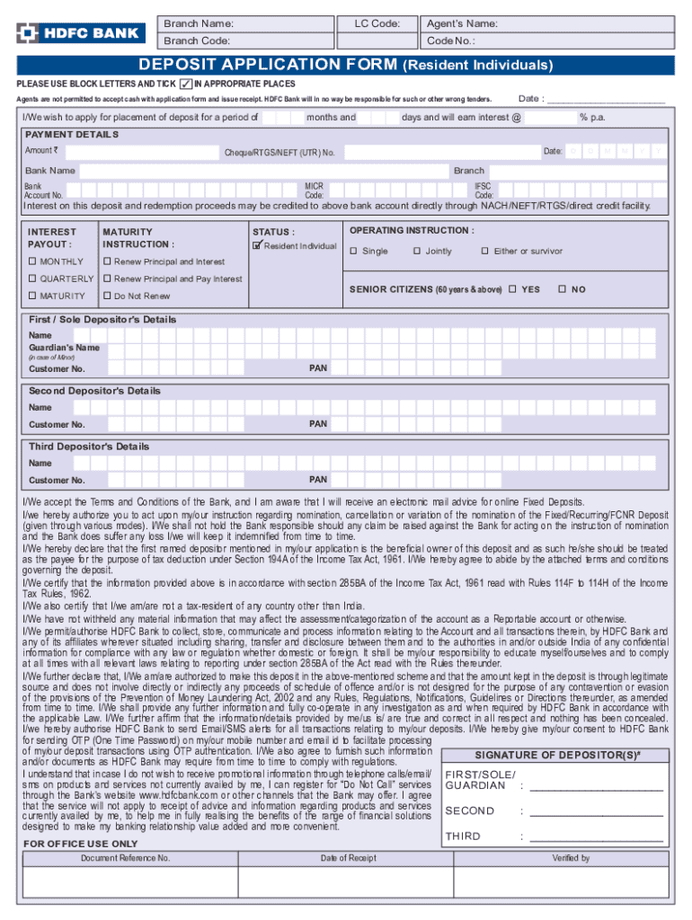 Who Needs the HDFC Bank Deposit Application Form?