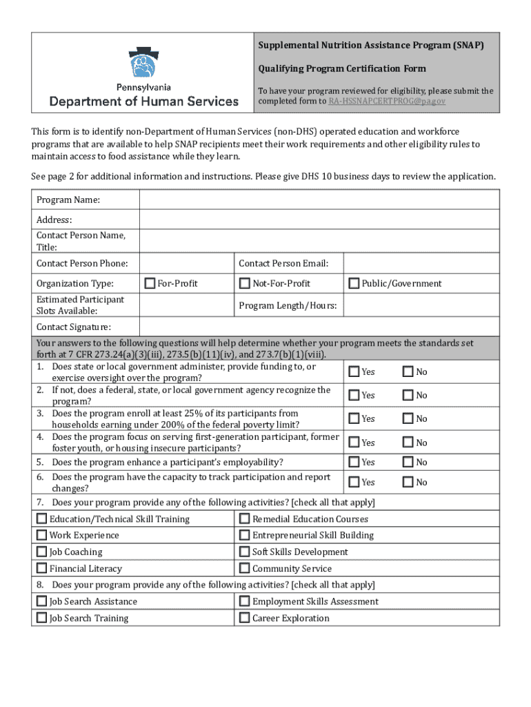 Email the completed form to RA-HSSNAPCERTPROG@pa.gov.