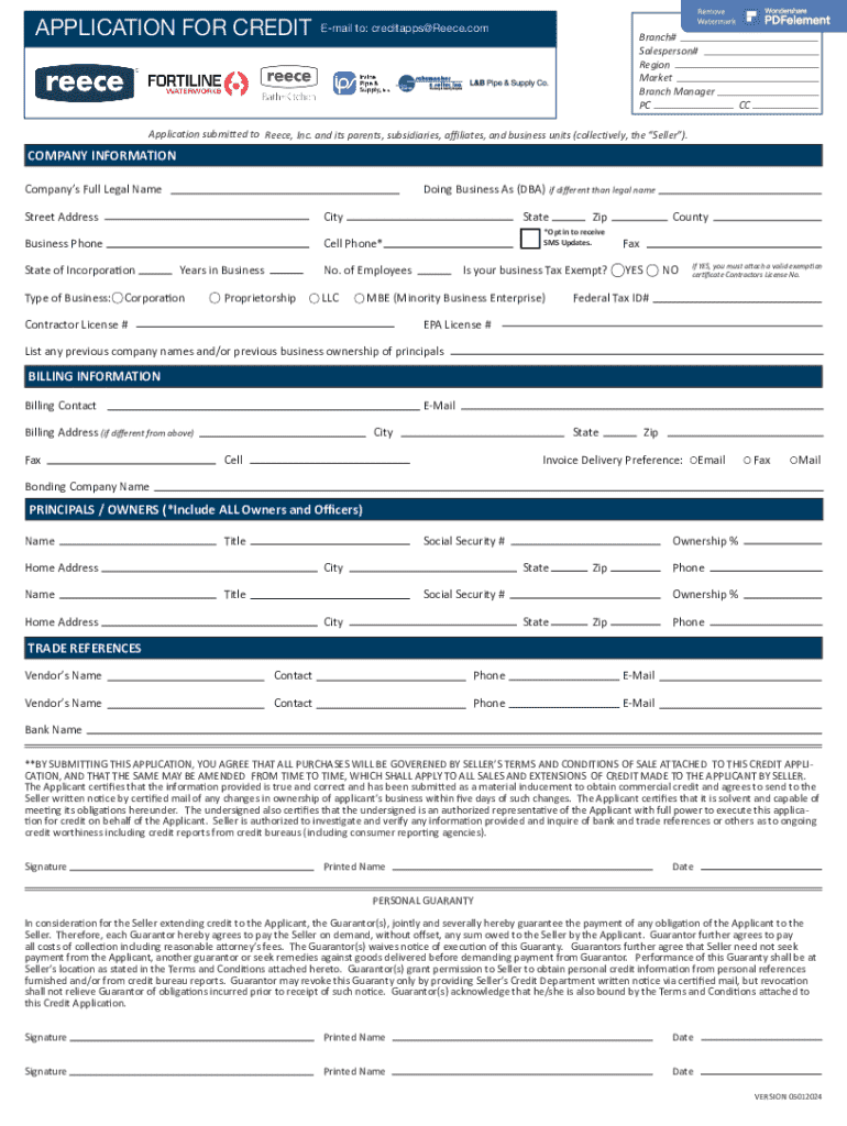 To complete the Reece Credit Application Form digitally, follow these steps: