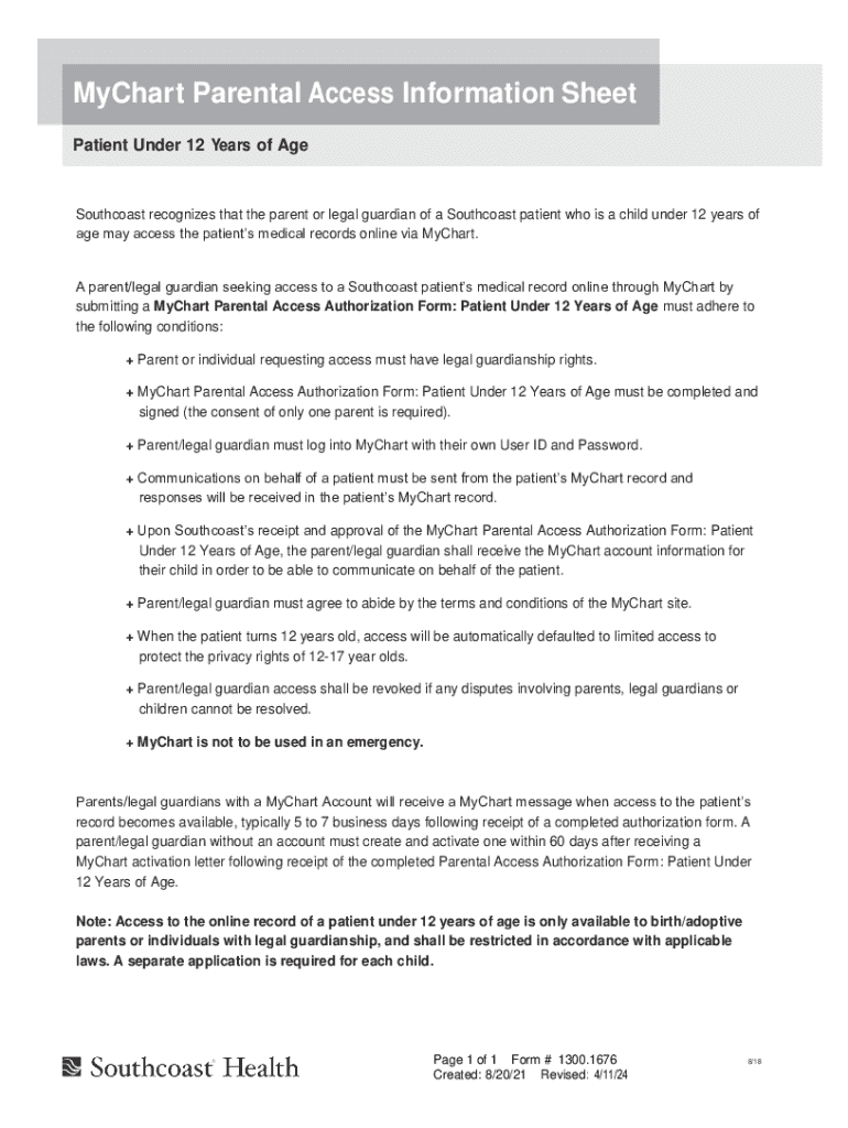 The form can be completed by parents or legal guardians of Southcoast patients who are under 12 years old and have legal guardianship rights.