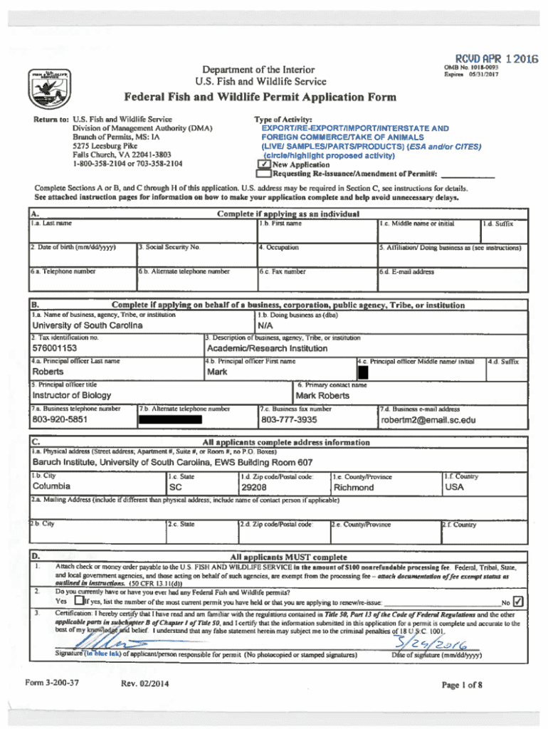 Get the free US Fish and Wildlife Permit Application Form