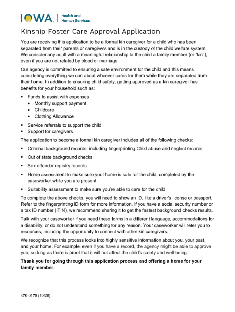 Get the free Kinship Foster Care Approval Application
