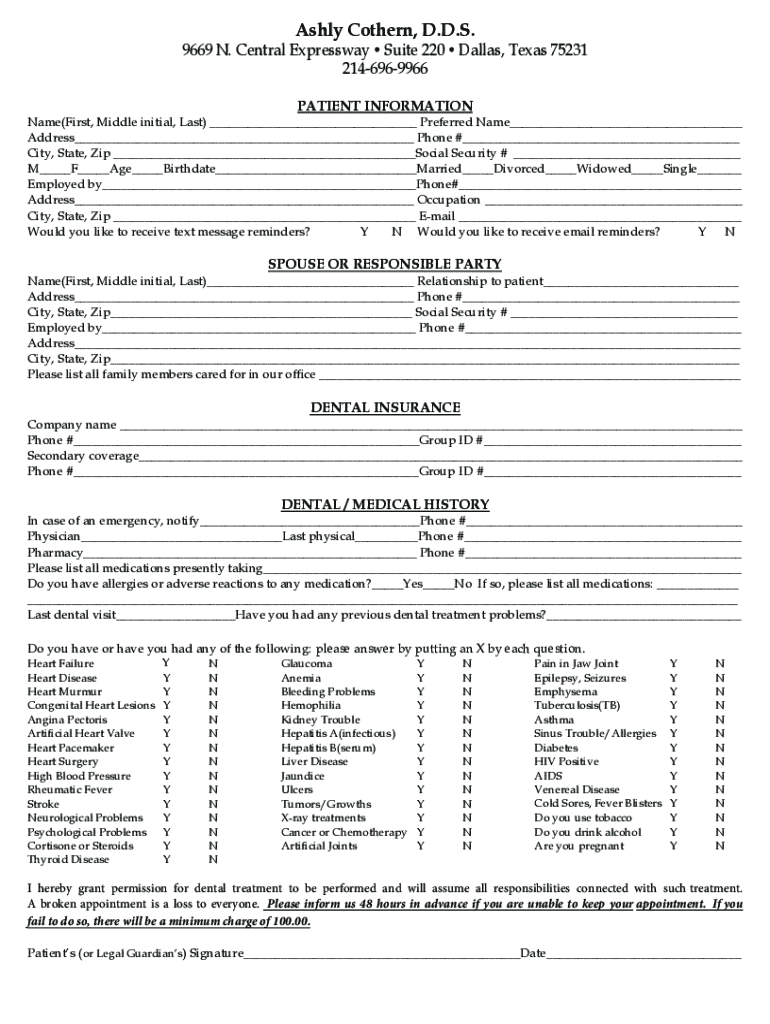 Get the free Dental Patient Information Form