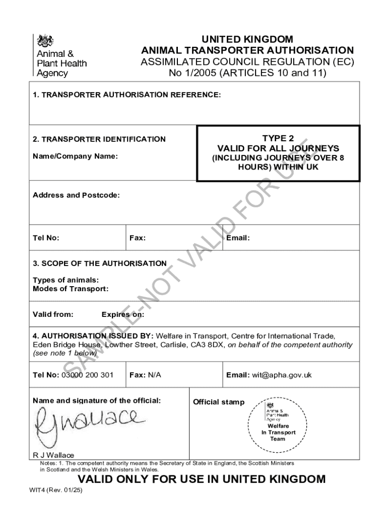Get the free UK Animal Transporter Authorisation