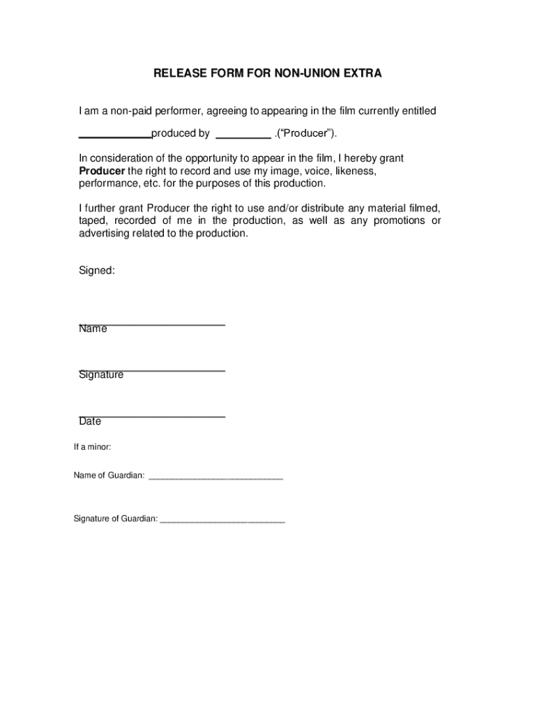 Get the free Release Form for Non-Union Extra