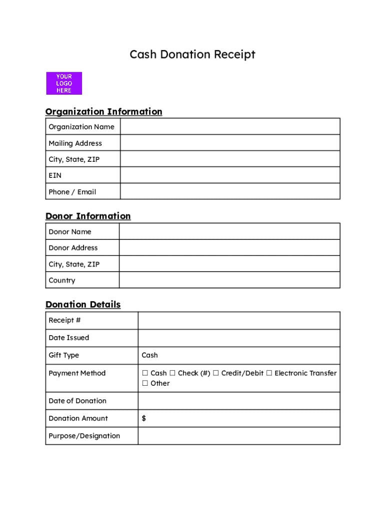 Signing the Cash Donation Receipt can be done through a digital signature or a traditional wet signature. It’s important to choose the appropriate signing method based on your organization’s policies and the preferences of the donor.