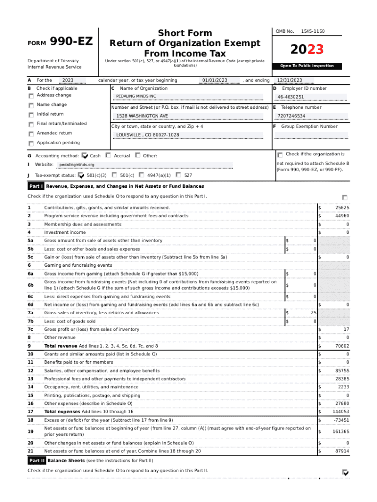 The Form 990-EZ 2023 is a tax document used by small tax-exempt organizations to report their financial activities and comply with IRS regulations.