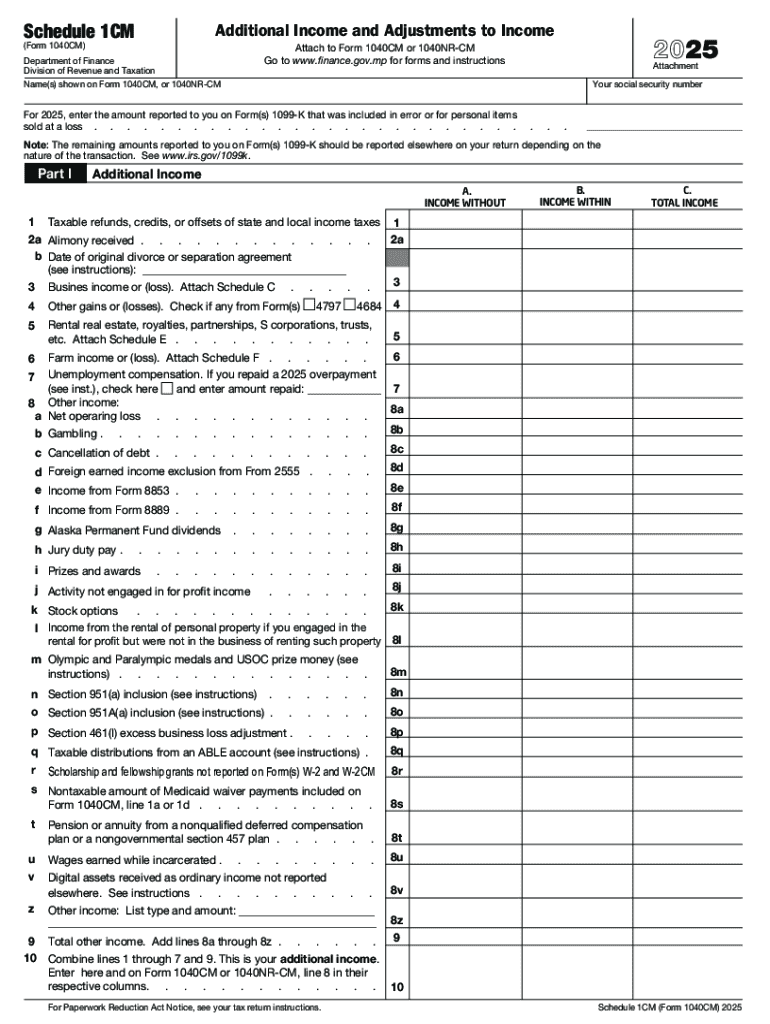 How to Submit the Completed Schedule 1CM Additional Income and Adjustments to Income