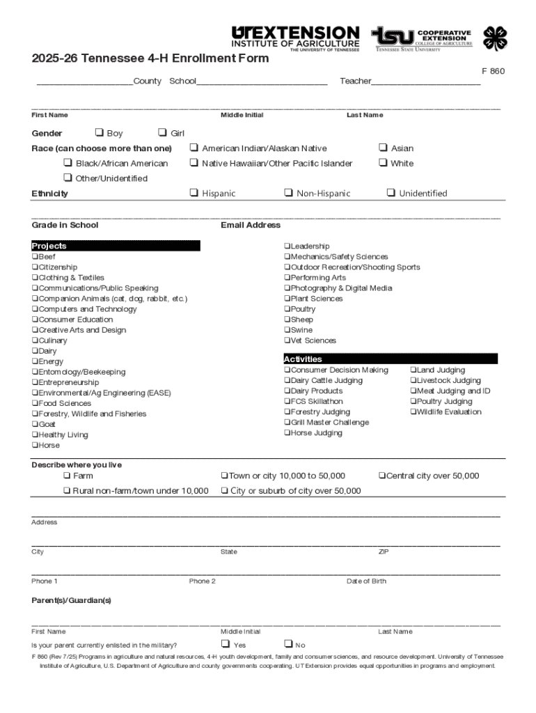 Get the free Tennessee 4-H Enrollment Form