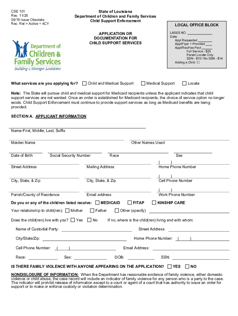 Get the free Louisiana Child Support Services Application