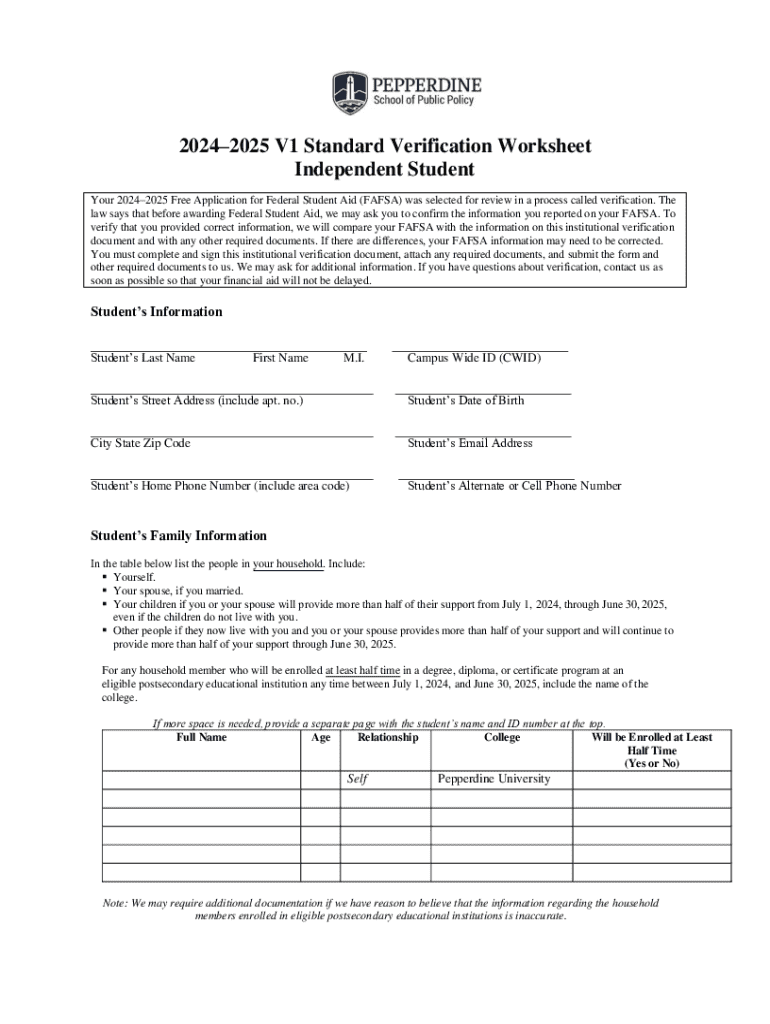 Get the free 2024–2025 FAFSA Verification Worksheet