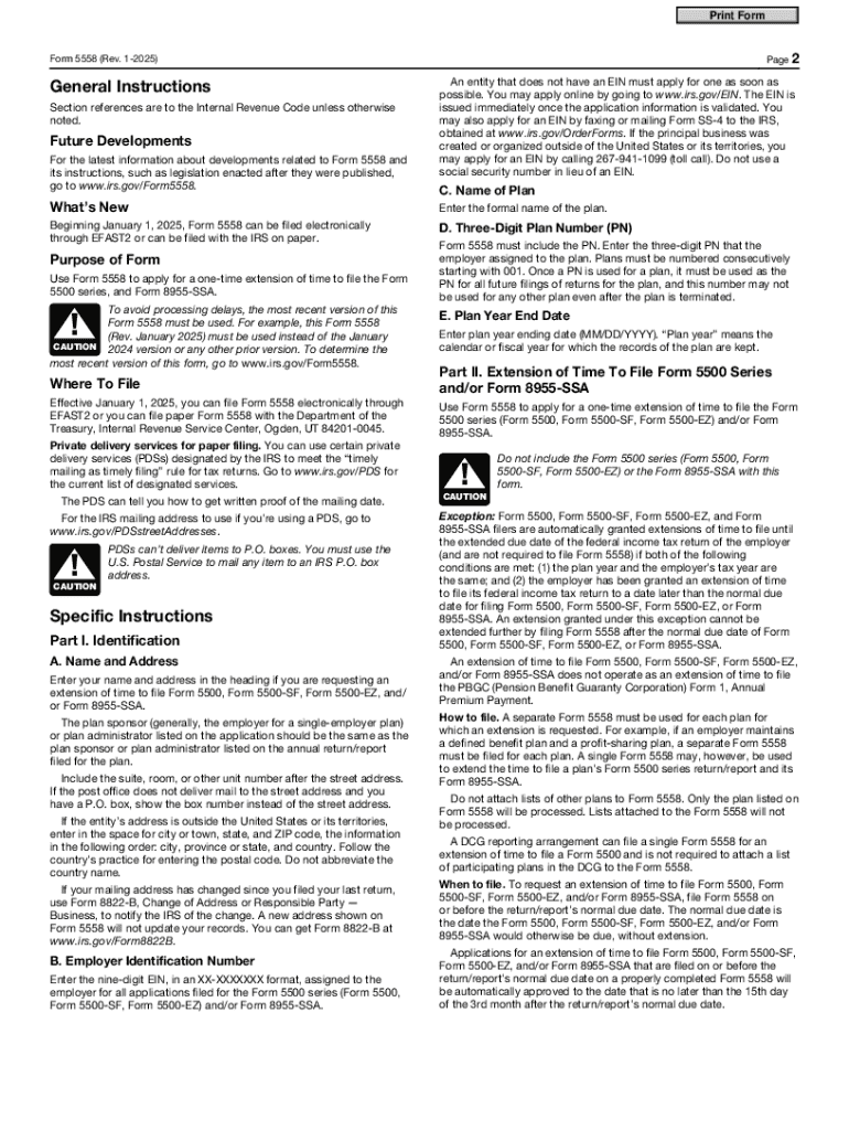 Any entity that sponsors a retirement plan and requires additional time to file the Form 5500 series or Form 8955-SSA is eligible to use IRS Form 5558.