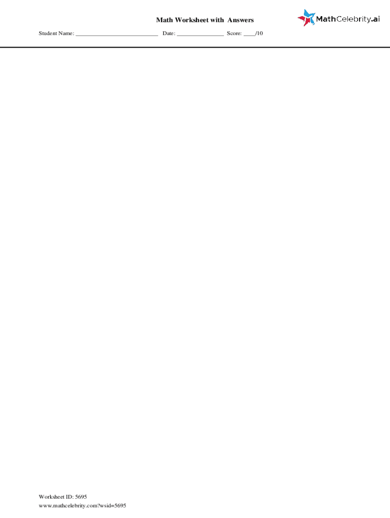 Get the free Math Worksheet with Answers