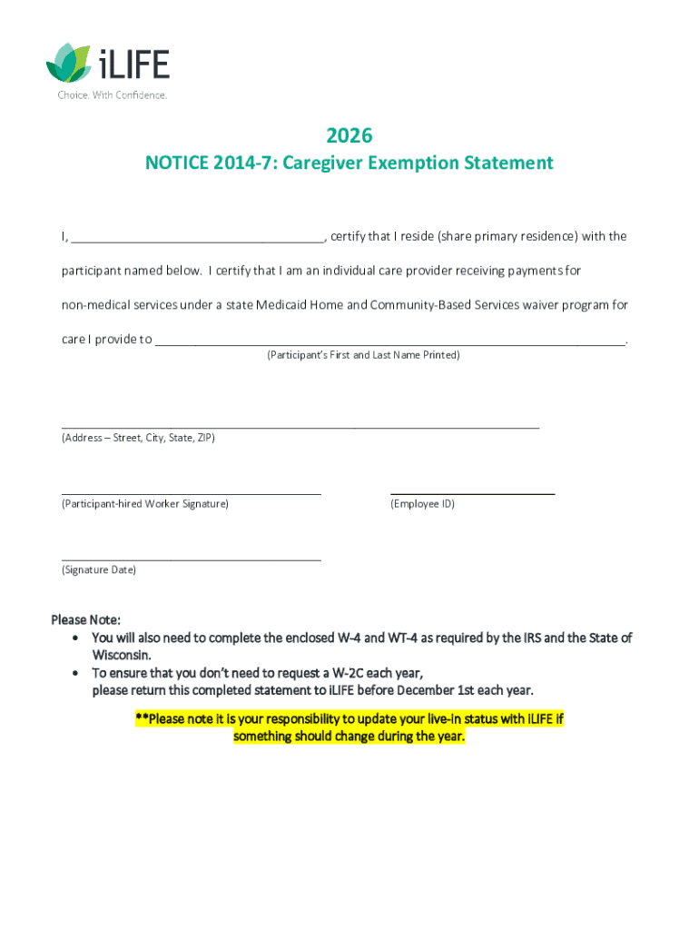 Get the free Caregiver Exemption Statement