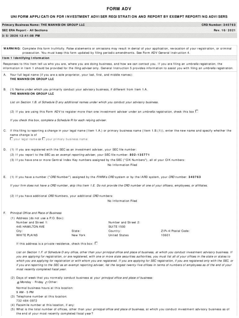 Get the free Form ADV Investment Adviser Registration
