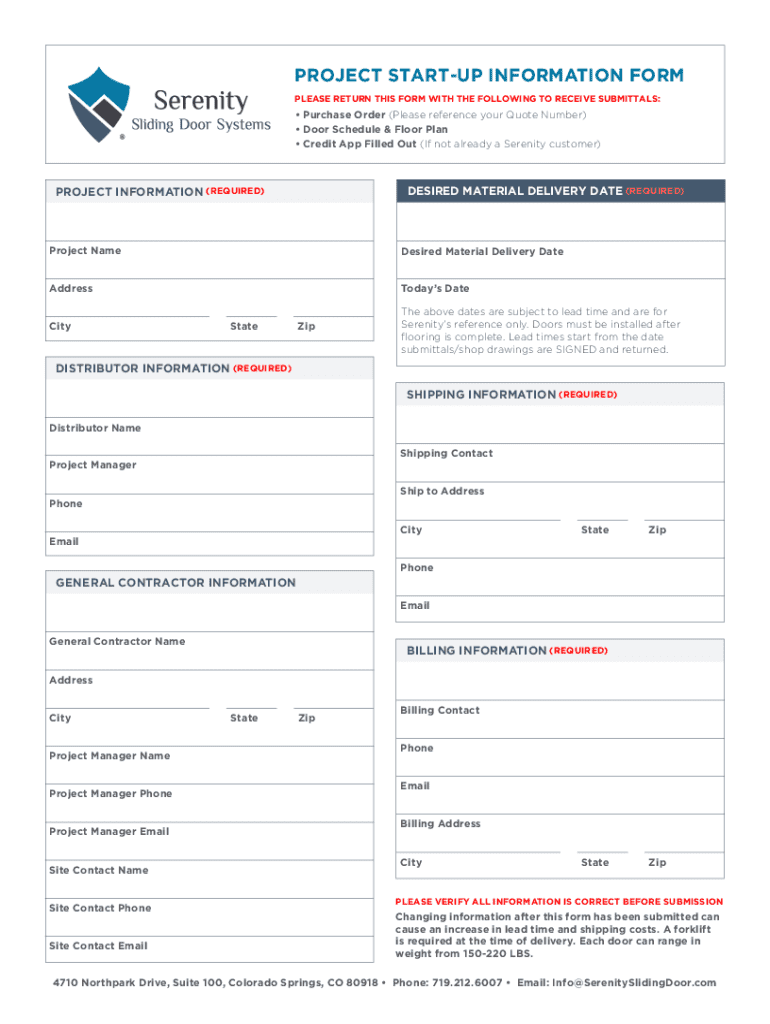The Project Start-Up Information Form is a business document used by companies to collect vital project details for material delivery and installation.