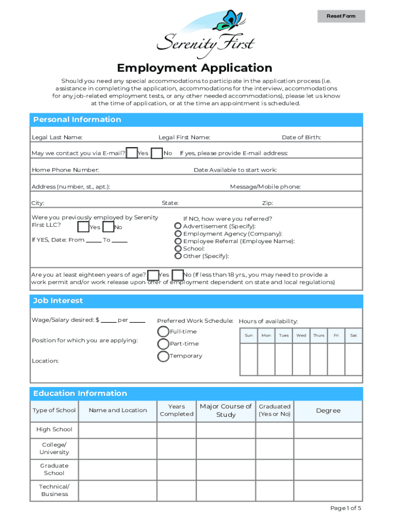 Get the free Serenity First LLC Employment Application