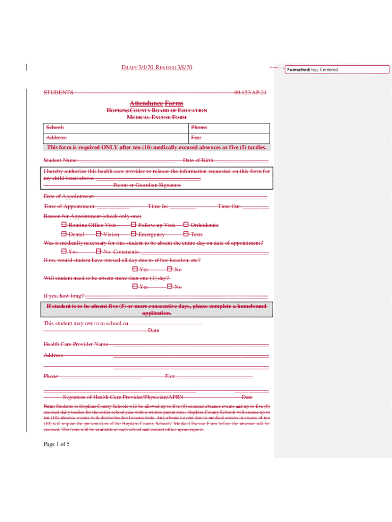 Get the free Hopkins County Medical Excuse Form